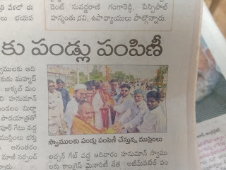 హనుమాన్ స్వాములకు ఆదివారం కాంగ్రెస్ పార్టీ ముస్లిం నాయకుడు మహమ్మద్ అజీమ్ పాషా పండ్లు పంపిణీ చేశారు జుక్కల్ మండలంలో కెమ్రాజ్ కల్లాలి కి చెందిన హనుమాన్ స్వాములు భక్తులు మద్దనూర్ మండలం మీర్జాపూర్ హనుమాన్ మందిరానికి పాదయాత్రతో బయలుదేరారు స్వాములకు శాఖాపూర్ గేటు వద్ద శాఖాపూర్ ముస్లింలు భక్తులకు పండ్లు పంపిణీ చేశారు అనంతరం స్వాములకు సన్మానించారు కల్లాలి మాజీ సర్పంచ్ రమేష్ తదితరులు పాల్గొన్నారు